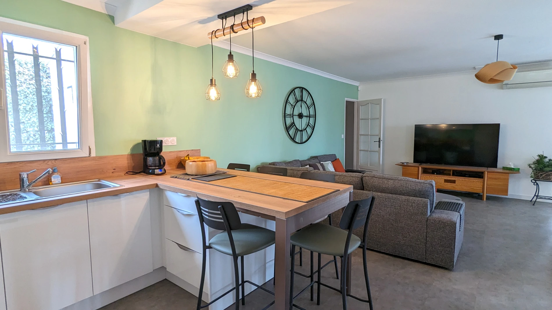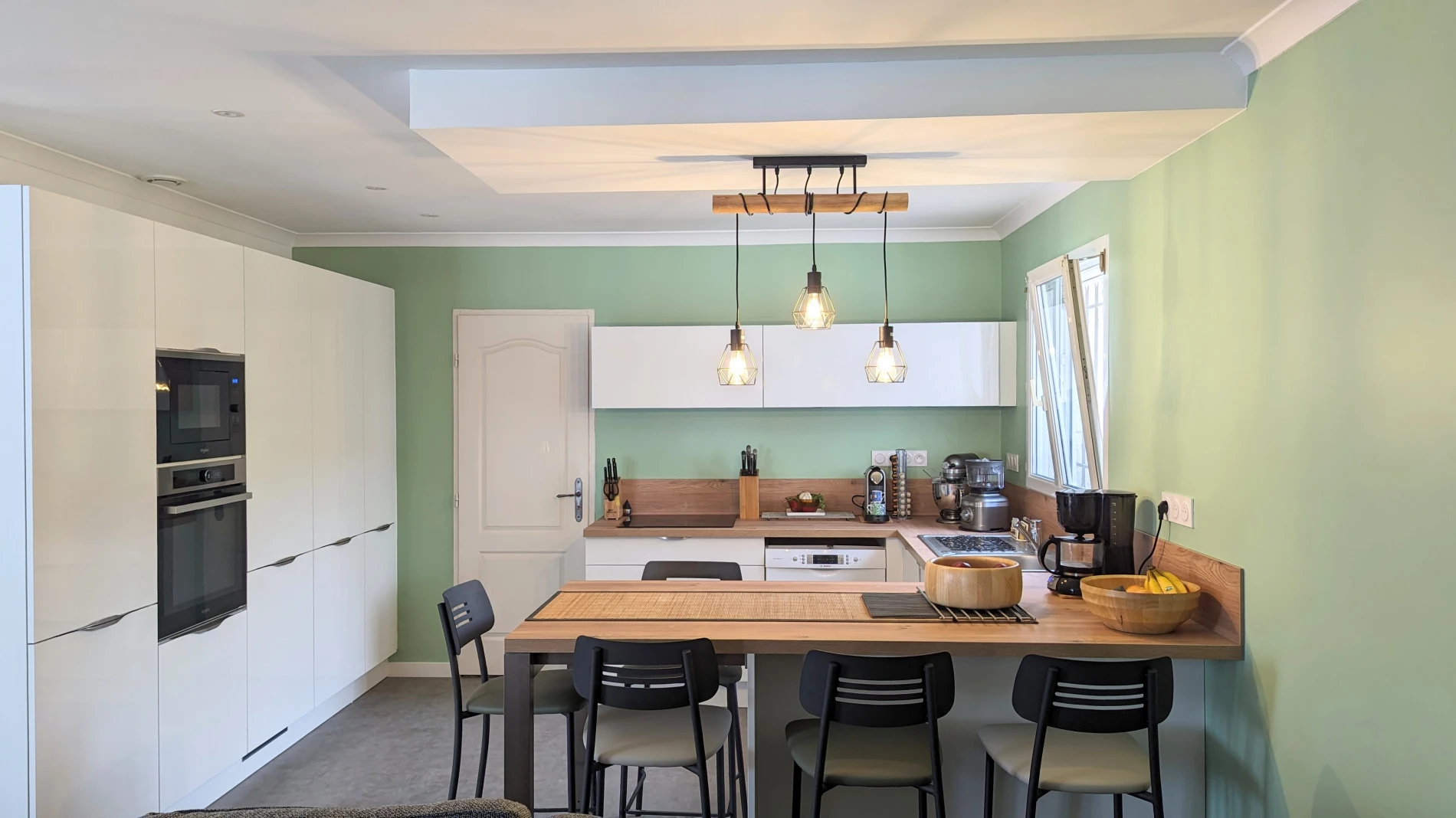 Ce projet de rénovation intérieure à Coudoux s’est articulé autour d’un objectif précis : créer un espace convivial où la cuisine ouverte sur la pièce de vie devient le véritable cœur de la maison.