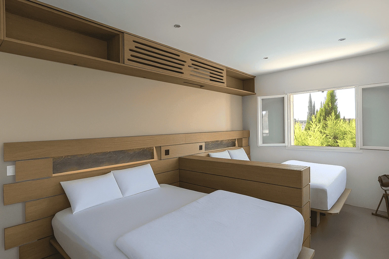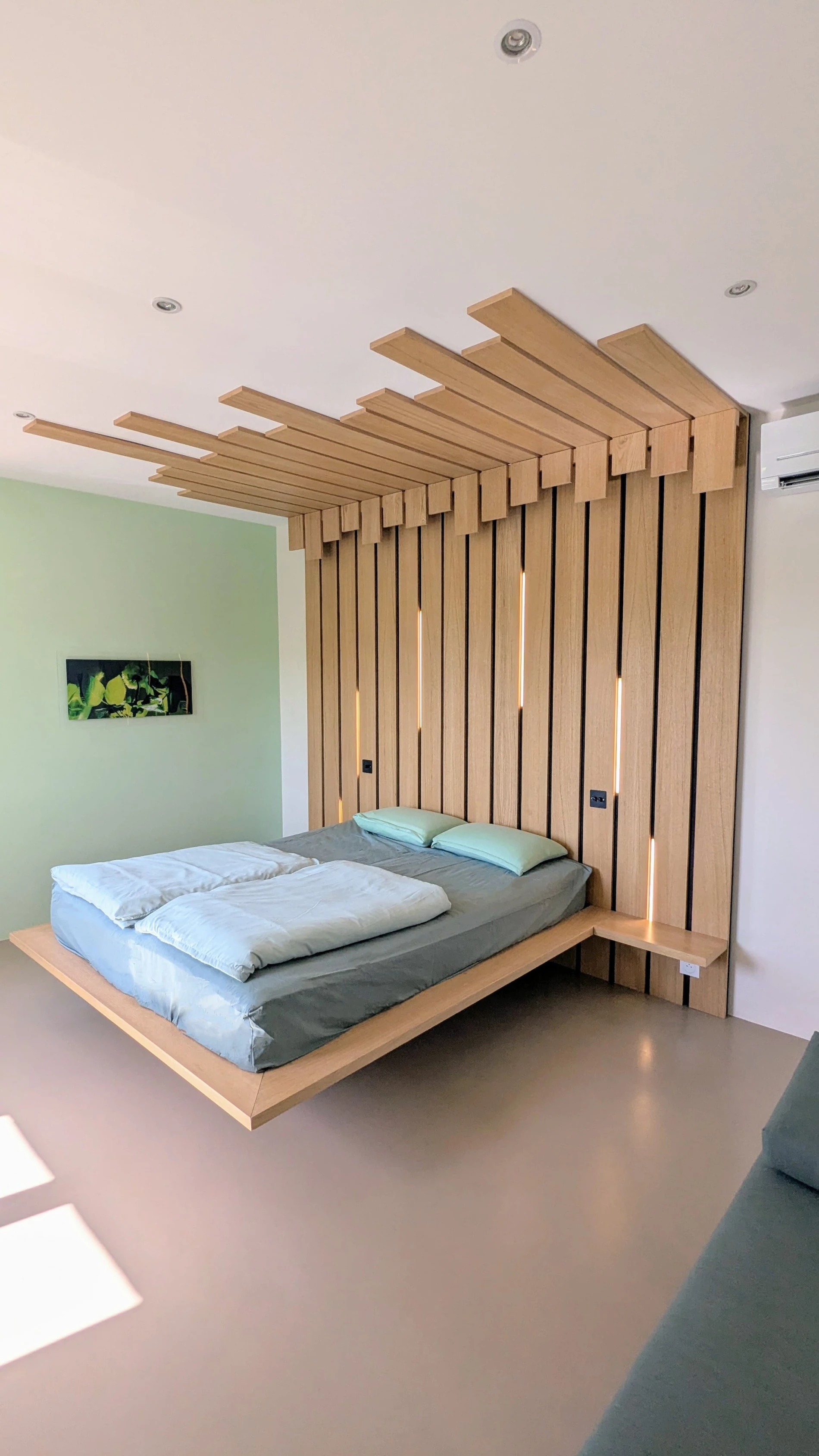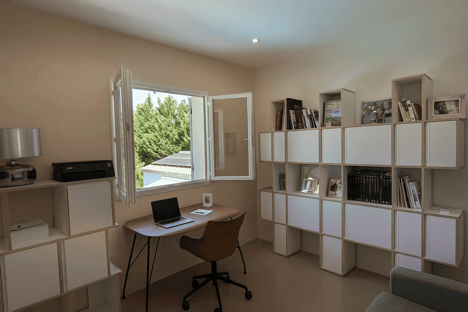 Rénovation clé en main des espaces invités et du bureau de cette très belle villa contemporaine située à La Barben. Création de mobilier sur mesure unique pour les différentes espaces, choix du mobilier et de la décoration.